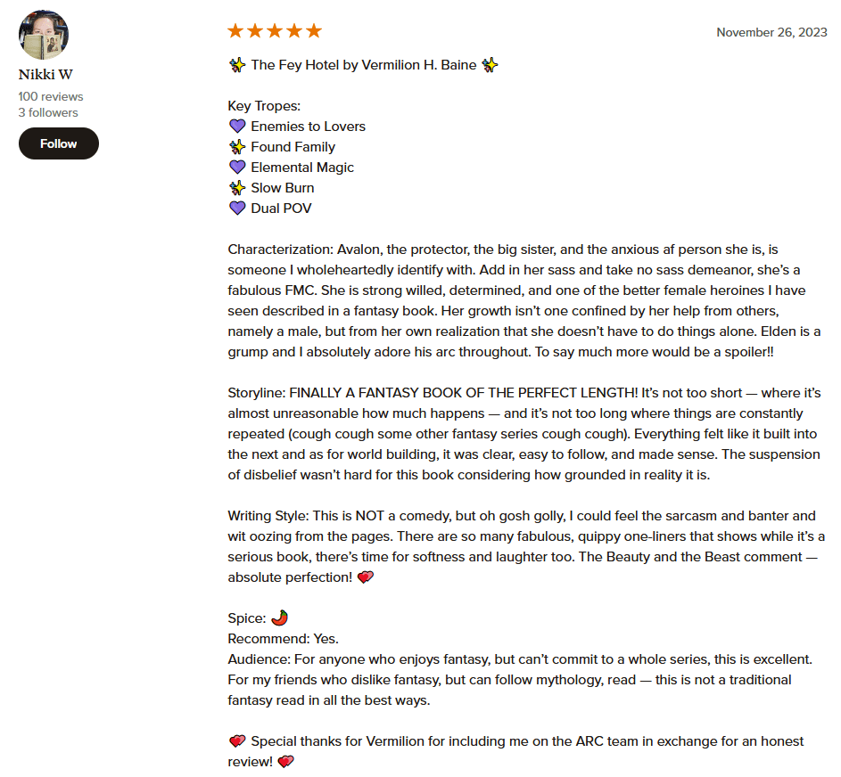 The Fey Hotel’s First Goodreads Review by Nikki! Thank you, Nikki!