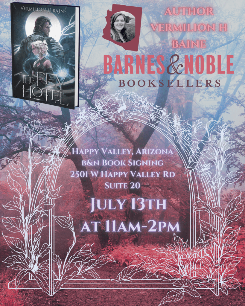 If you’re in the Arizona area, I’ll be singing copies of The Fey Hotel at the Happy Valley, AZ Barnes and Noble! I’ll have my stickers and art with me. Hope to see you there! Date: July 13th, 2024 11am-2pm