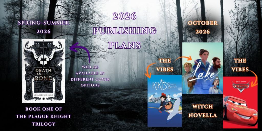 I know 2025 was a slow year for me (no releases but I did have a baby!), but 2026 is GOING TO BE WILD! I have THREE special, SECRET projects coming next fall, a LOT of art on the way (Atticus fans rejoice!), and I plan to publish two books. Death and Her Bond, the first book in my new gothic fantasy will release Spring-Summer 2026. In October 2026, I will release a cozy, witch romance novella. You can check out the vibes below, and I will NOT be explaining them.